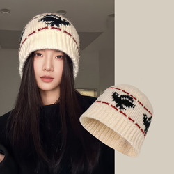 רטרו מודפס beanies לנשים כובעי חורף רך חם ביאני נשים סורגת את הגולגולת