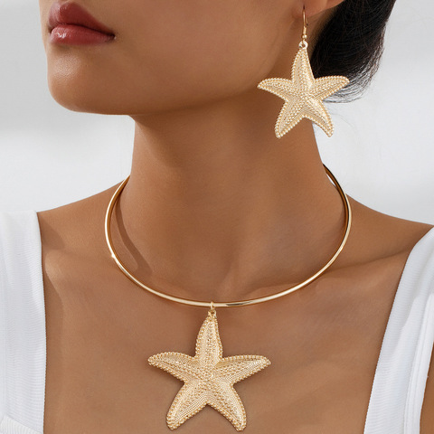 ヨーロッパとアメリカのビーチバケーションスタイルヒトデペンダントイヤリングネックレスセット女性のための誇張されたファッションアクセサリー