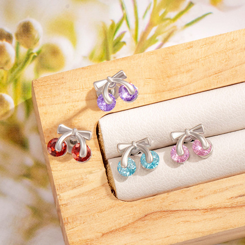 新しい甘いかわいい幾何学的なチェリーフルーツの形カラフルなクリスタルイヤリング