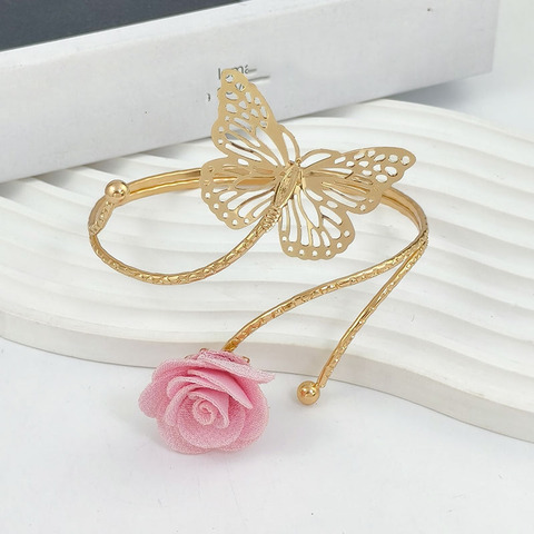 卸売女性ファッションジュエリー金属合金蝶花ブレスレットカフスアームバングルブレスレット