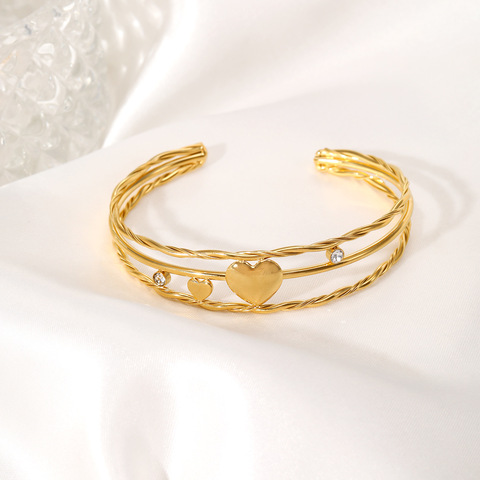 Pulsera chapada en oro de acero inoxidable con apertura de amor de tres capas para mujer, creativa, versátil, nueva moda
