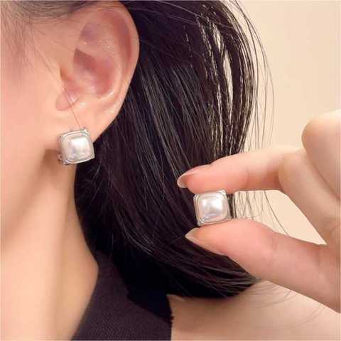 גבוה מרובע פנינה פנינה דו צדדי עגילי נשים דו-צדדי