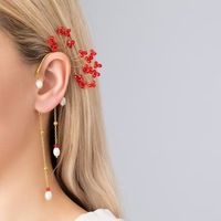 Châu Âu và Mỹ mới thời trang khí chất Màu Đỏ Tua Tai treo bông tai