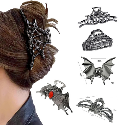 Заколки для волос на Хэллоуин, скелет черепа, готический панк, аксессуары для Хэллоуина, подарки для женщин и девочек, черный металлический Паутинный коготь