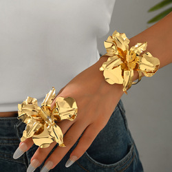 Toptan moda geometrik alaşım gül çiçek inci manşet bileklik bilezik yüzük takı