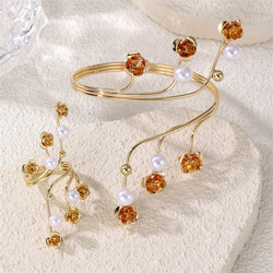 Bán buôn thời trang hình học hợp kim Rose Flower Pearl Cuff Bangle Vòng đeo tay Vòng trang sức